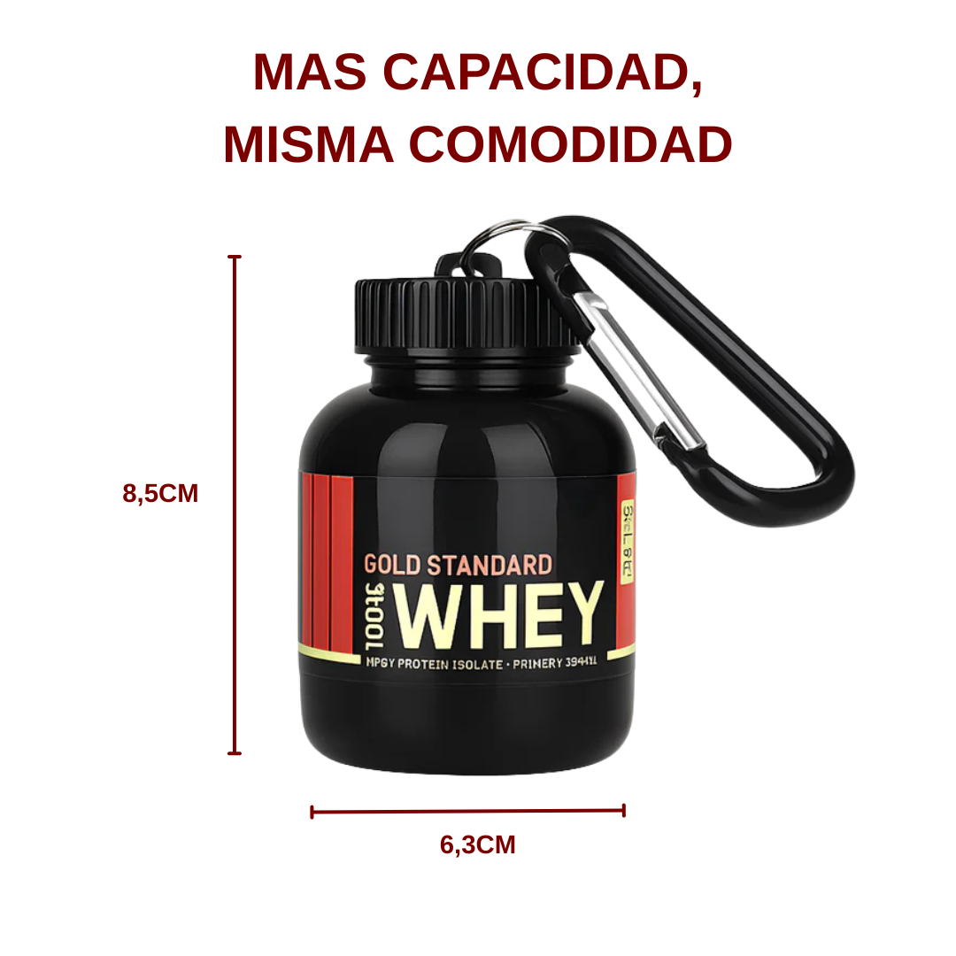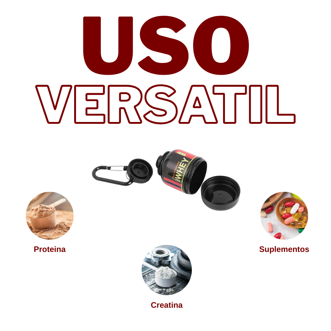 Lleva tu proteína, creatina o suplementos siempre listos en un formato compacto y práctico. Ideal para tu rutina fitness, trabajo o viajes.